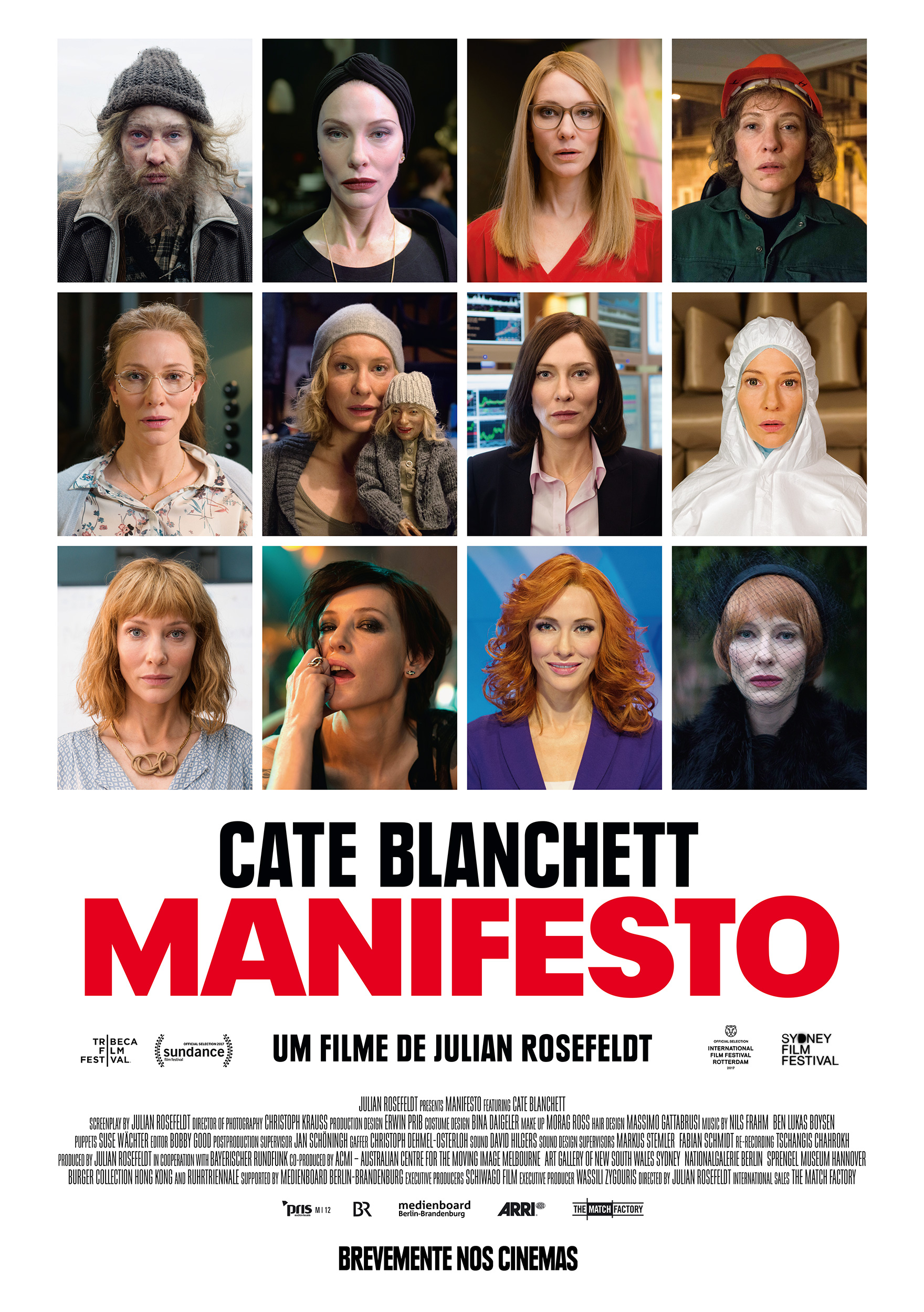 Com realização do artista plástico Julian Rosefeldt e com Cate Blanchett como protagonista, um filme onde 13 personagens questionam o papel do artista através de 13 textos da autoria de Rosefeldt, a partir de cerca de 60 originais de artistas, arquitectos, filósofos e realizadores dos séculos XIX e XX. Com cenários contemporâneos, foram filmados monólogos que vão buscar influências tão diversas como o "Manifesto Comunista" (1848), de Karl Marx e Friedrich Engels, ou as "Golden Rules of Filmmaking" (2004), do cineasta Jim Jarmusch. Blanchett dará assim corpo a uma pivô de telejornal, uma professora, um operário fabril, uma viúva ou um sem-abrigo. Será também a voz de futuristas, surrealistas e dadaístas, de artistas e outros criadores como Sol LeWitt, Kazimir Malevich, Claes Oldenburg, Yvonne Rainer, Werner Herzog, Lars von Trier ou Wassily Kandinsky.