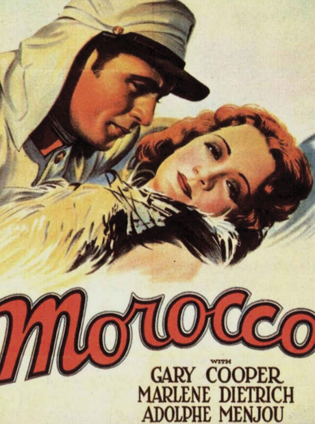 O filme que impôs definitivamente Marlene Dietrich nos EUA. Uma história de amor onde uma cantora troca a riqueza de Monsieur La Bessiere (Adolphe Menjou) pelo amor de um legionário com fama de rebelde e conquistador, Tom Brown (Gary Cooper). Baseado numa peça de Benno Vigny, "Marrocos" - que homenageia esta semana uma das maiores divas do cinema -, é o segundo filme de Sternberg com Marlene Dietrich. A película foi um estrondoso sucesso na América, onde estreou primeiro que "O Anjo Azul". Uma história de amor e perdição em atmosfera de aventura colonial e exótica que deixou imagens para a história do cinema: Marlene seguindo a pé o seu "beau légionnaire" pelas areias do deserto, a cantar vestida de homem e de cigarro na mão, ou dando um beijo a uma cliente do cabaret.