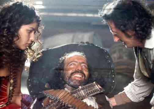Aí vive (ou melhor sobrevive) Julián, um especialista veterano de cinema. Ao seu lado trabalham outros marginais e nostálgicos sem cura: Cheyene, o pistoleiro cobarde, Manuel, o temerário, Arrastrao, o cavaleiro sem sorte, Ahorcado, o enforcado triste, Enterrador, o italiano, Don Mariano, o dono da povoação, e meia dúzia de ciganos mascarados de índios. Todos ganham a vida recriando patéticas cenas de acção para os escassos turistas que visitam a zona. Mas as existências de todas estas criaturas mudam do dia para a noite quando aparece Carlos, um miúdo que assegura ser neto de Julián. Enquanto a avó desespera, a mãe, uma executiva agressiva, decide enfrentar de uma vez todos os fantasmas do passado. Para isso conta com o sócio Scott, um tubarão financeiro. A partir daí as feridas mal saradas e a especulação imobiliária terão consequências imprevisíveis. Serão 800 balas suficientes para defender uma forma de vida baseada na mais pura das fantasias cinematográficas. PUBLICO.PT