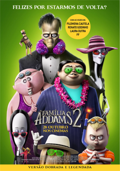 Uma comédia de animação inspirada na banda desenhada criada por Charles Addams, que se tornou famosa após ter sido adaptada ao grande ecrã em 1991 por Barry Sonnenfeld. “A Família Addams 2” segue as aventuras do filme de 2019 e é novamente realizado por Conrad Vernon e Greg Tiernan e desta vez co-realizado por Laura Brousseau e Kevin Pavlovic. As vozes da versão original são de Oscar Isaac, Charlize Theron, Chloë Grace Moretz, Nick Kroll, Javon Walton, Wallace Shawn, Wayne Knight, Snoop Dogg, Bette Midler e Bill Hader. Já a versão dobrada conta com Laura Dutra, Filomena Cautela, Renato Godinho e FF. PÚBLICO