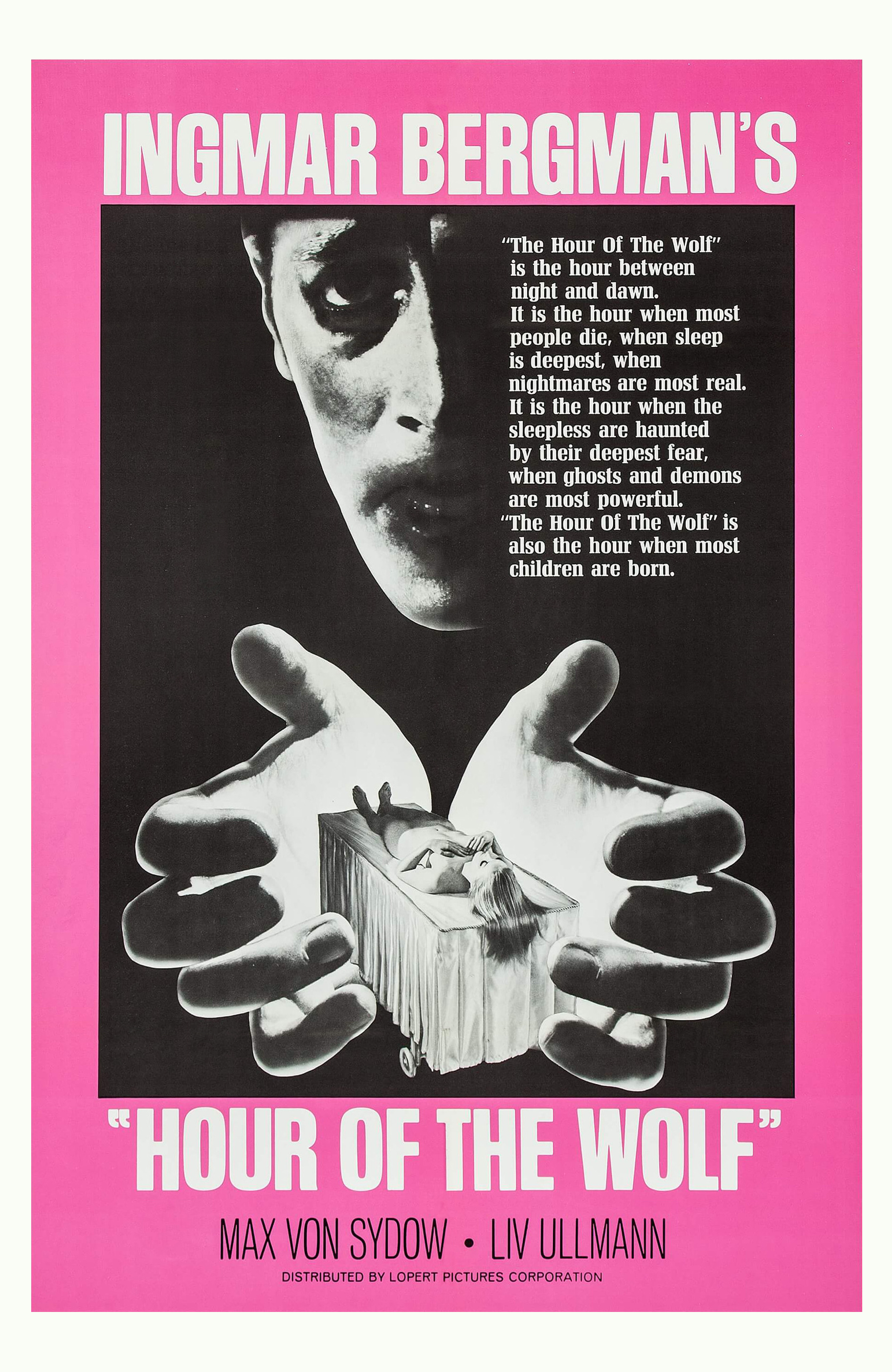 Esta "obra extremamente pessoal", no dizer de Ingmar Bergman, foi bastante mal recebida à época e alguns críticos falaram inclusive em declínio do realizador, em comparação com a perfeição de Persona. Filme "confessional", segundo o próprio Bergman, sobre um homem depressivo, "Vargtimmen é uma travessia dos sonhos e obsessões mais secretos de Bergman (...) sob o signo da hora do lobo, essa hora entre a noite e o dia, quando todos os fantasmas se libertam, quando mais pessoas morrem e mais pessoas nascem" (João Bénard da Costa). Numa sequência célebre, num teatro de marionetas, é encenada a cena final do primeiro acto da Flauta Mágica, quando Tamino interroga a noite eterna e sabe que Pamina está viva. Texto: Cinemateca Portuguesa