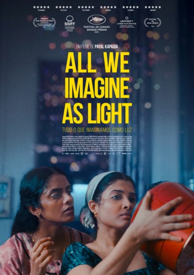 "Tudo o Que Imaginamos Como Luz", primeira longa-metragem de ficção realizada pela indiana Payal Kapadia (que também acumula os papéis de argumentista e protagonista), vencedora do Grande Prémio do Festival de Cannes, é um "drama feminino" sobre a influência que as conservadoras tradições classicistas e machistas ainda continuam a ter no controle das relações conjugais, através dos "casamentos combinados" por familiares à revelia dos futuros casais (inclusivé, no universo de mulheres cultas e emancipadas residentes nas grandes urbes cosmopolitas).