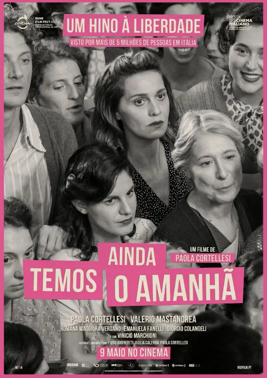 "Ainda Temos o Amanhã", primeira longa-metragem realizada (e, igualmente, escrita e protagonizada) por Paola Cortellesi, é uma comédia de estilo (semi) neorealista (pop), ambientada na Roma proletária do pós segunda guerra mundial (1946), que explora a narrativa das submissas mulheres-objecto, sem quaisquer direitos, vítimas de uma sociedade ultra-patriarcal.
