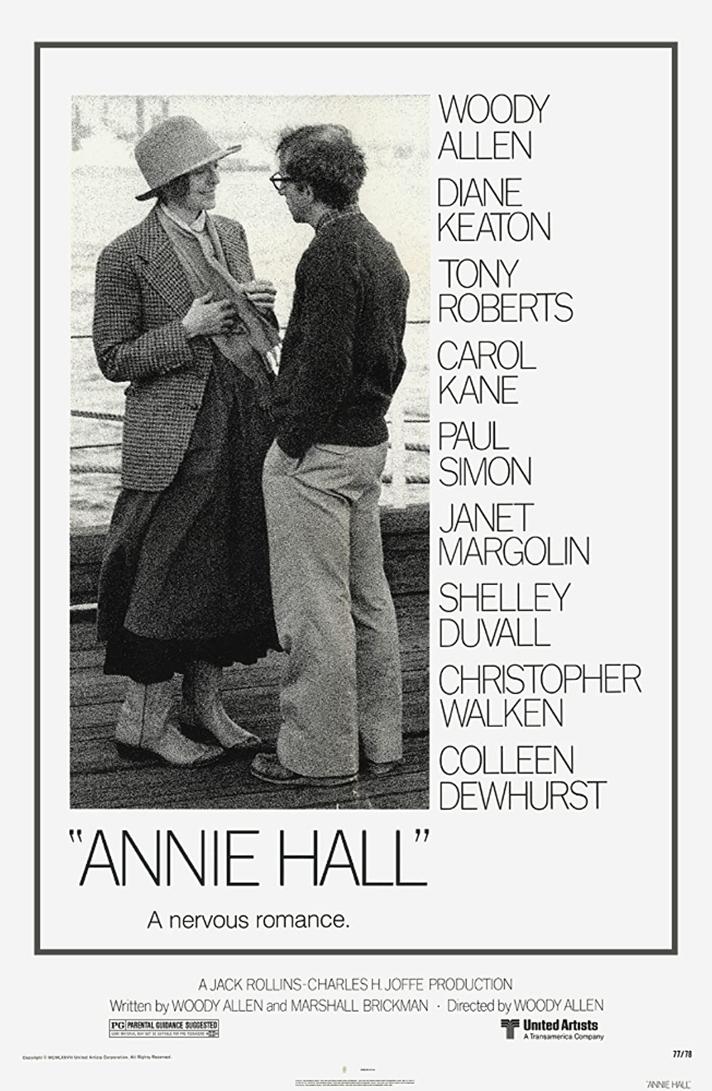 "Annie Hall" é o filme que marcou a passagem de Woody Allen da primeira fase da sua carreira, com comédias simples e despreocupadas, para filmes mais filosóficos e dominados pelas suas obsessões. Woody Allen interpreta o papel de um escritor de comédias, inseguro e neurótico, que se apaixona por Annie Hall (Diane Keaton), uma aspirante a cantora. Com uma visão simultaneamente cínica e bem-humorada das relações pessoais, esta história de complicações amorosas é um documento histórico sobre o amor nos anos 70. Valeu três Óscares a Woody Allen (melhor filme, argumento e realizador), que se recusou a ir a Hollywood recebê-los. PÚBLICO