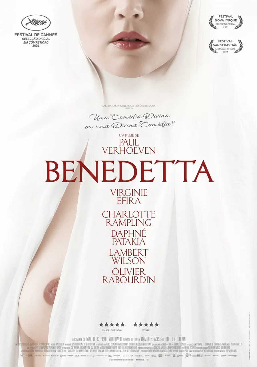 O octogenário holandês Paul Verhoeven (que se transformou num cineasta estratosférico graças ao célebre descruzar de pernas da Sharon Stone no filme "Instinto Fatal") regressa aos grandes ecrãs, cinco anos após o excelente "Elle", com um drama de época de cariz erótico-religioso ("Benedetta"). <br />Uma obra inspirada na história veridica de uma freira italiana do século XVII, que após ser percepcionada pelos conterrâneos como uma figura santificada (devido às suas visões de Jesus e por apresentar múltiplos estigmas), caiu em desgraça com as acusações de blasfémia e de conduta lasciva por manter relações sexuais com uma noviça. <br /> <br />A força deste filme provém exclusivamente das cenas (alegadamente) polémicas de indole sexual num contexto sagrado, já que tudo o resto revela-se um total desapontamento para com o "mestre da manipulação". <br />A narrativa encontra-se recheada de patéticos/descontextualizados diálogos que roçam a irrisão e a reconstituição de época, bem como a fotografia, são quase amadoras (será tal facto propositado, em nome de um qualquer statement?).