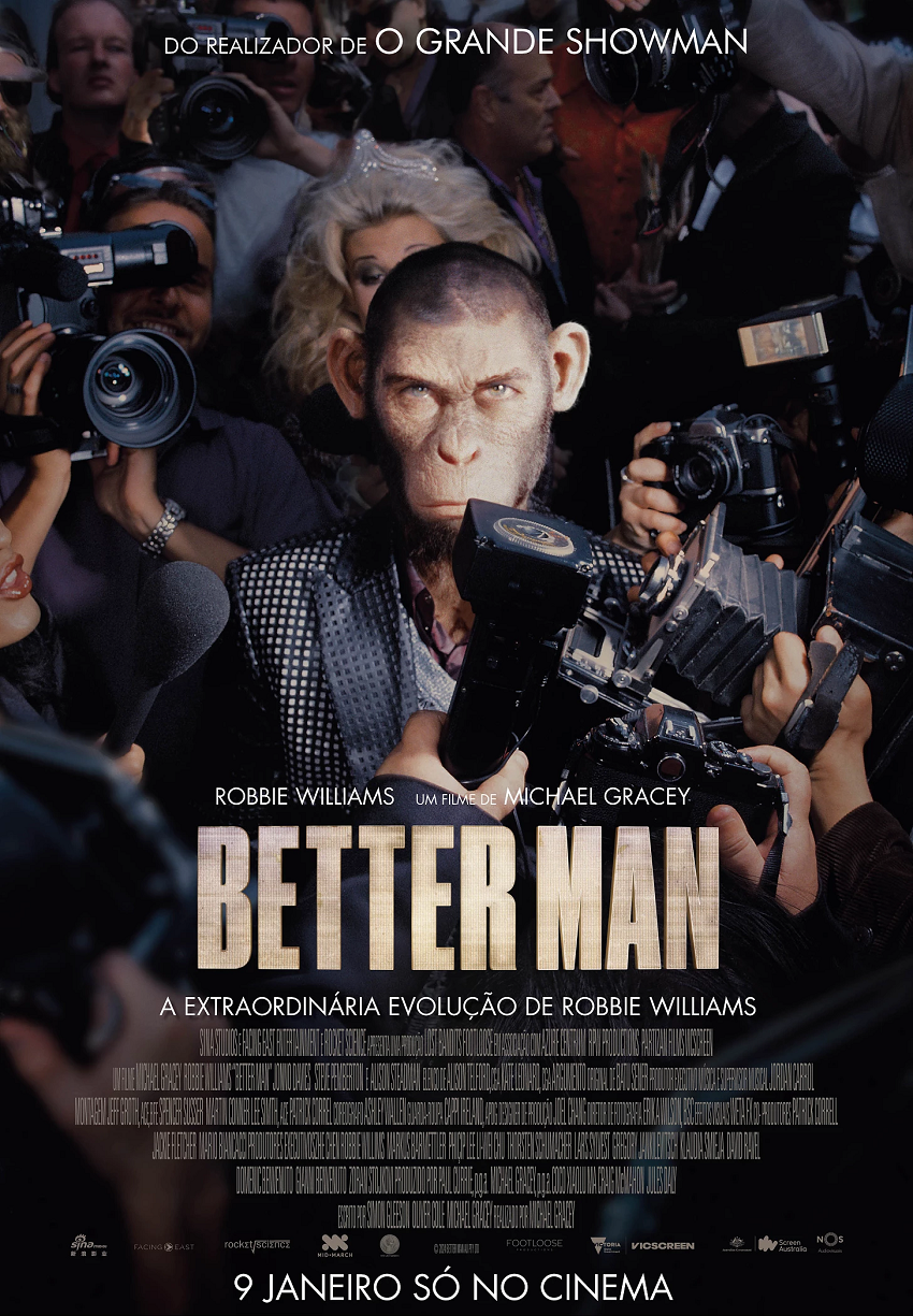 Com assinatura por Michael Gracey (“O Grande Showman”), este “biopic” musical conta a história de vida do cantor Robbie Williams, considerado um dos maiores artistas britânicos de sempre. Através de versões reinventadas de alguns dos seus maiores êxitos, seguimos o percurso de Robbie – representado como um chimpanzé através da captura de movimentos do actor Jonno Davies e a quem é dada a voz do próprio Robbie Williams – desde a infância, enquanto sonhava com o estrelato, aos anos em que integrou a banda Take That e, mais tarde, durante uma carreira solo que lhe valeu reconhecimento internacional. Mas o êxito misturou-se demasiadas vezes com sérias derrotas pessoais que envolveram abuso de álcool e drogas, doença mental, dificuldade em lidar com a fama e uma constante necessidade de aprovação. PÚBLICO