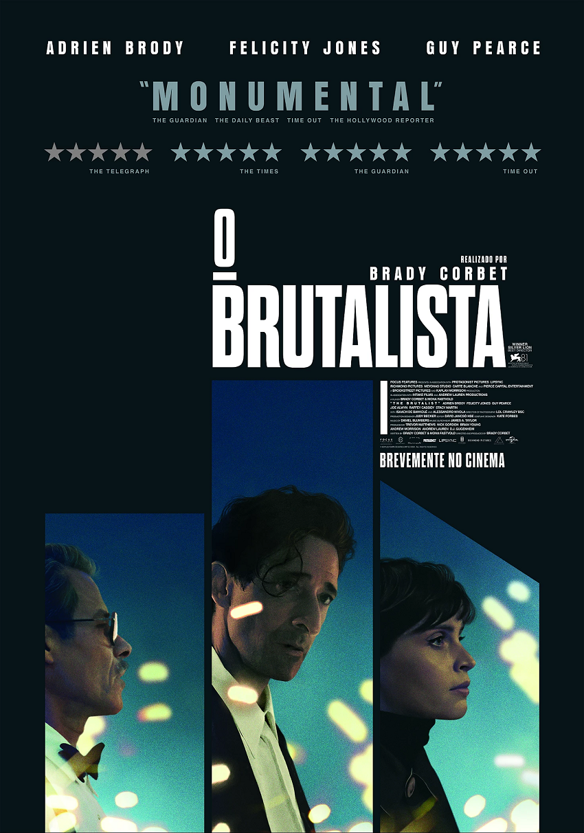 "O Brutalista", um opressivo drama histórico com caracteristicas de biografia (sobre um personagem fictício), dirigido pelo norte-americano Brady Corbert, estreia-se nas salas de cinema com o chamariz de ser um dos principais favoritos à vitória nos Óscares (tendo já no seu currículo o Leão de Prata do festival de Veneza - na categoria de melhor realização - e três Globos de Ouro).