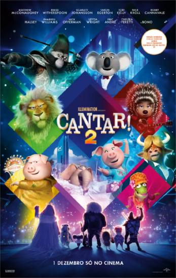 Dos estúdios Illumination (responsáveis por "Gru - o Maldisposto", "Mínimos", "A Vida Secreta dos Nossos Bichos" ou o primeiro “Cantar!”), uma comédia para toda a família, com realização de Garth Jennings ("À Boleia pela Galáxia", "Filho de Rambow - Um Novo Herói" e “Cantar!”). Na versão original, as vozes são de Matthew McConaughey, Reese Witherspoon, Taron Egerton, Scarlett Johansson, Pharrell Williams, Tori Kelly e Bono, o vocalista dos U2. Aurea, Vasco Palmeirim, Mafalda Luís de Castro, Marco Delgado, Deolinda Kizomba e António Machado emprestam as suas vozes à versão dobrada em português. PÚBLICO