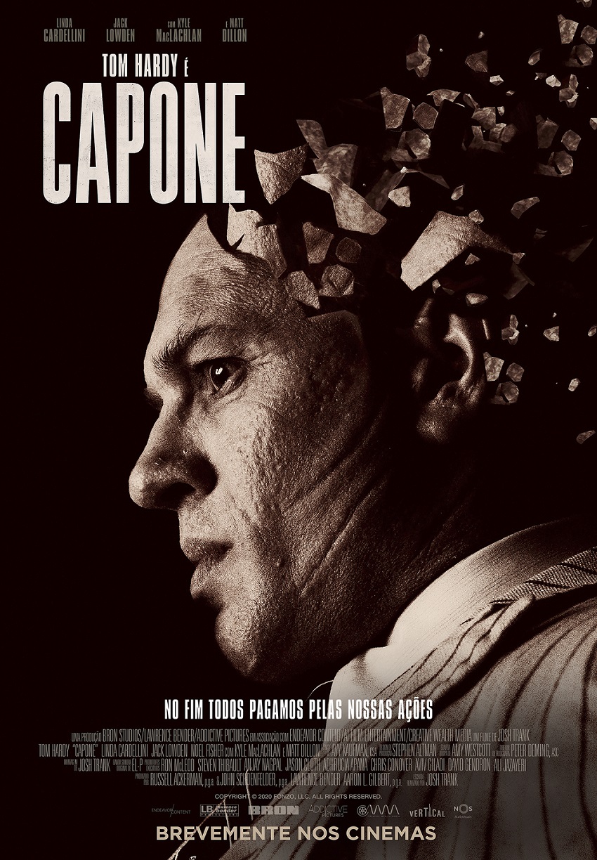 O filme "Capone", escrito e dirigido por Josh Trank, tal como o próprio nome indica, foca-se no mais famoso/perigoso mafioso italo-americano, que aterrorizou Chicago na década de 1920, período durante o qual este acumulou poder e uma incalculável fortuna, à boleia da implementação da Lei Seca, que proibiu o fabrico e comercialização de bebidas alcóolicas em território americano. <br /> <br />Joshua Trank que explora, de forma quase abjecta, a decadência fisica, mental e económica dos últimos dias de vida do gângster (falecido aos 48 anos), após ter saido da prisão devido ao seu débil/irreversível estado de saúde, possui o mérito de afastar-se da narrativa clássica dos filmes do género, preferindo aproximar-se do domínio do drama psicológico. <br />No entanto, esta será, por certo, a sua única virtude, mas não se revelará suficiente, e nem tão pouco o facto de possuir no elenco o Tom Hardy, para salvar esta repetitiva obra, destituida de conteúdo, do desastre total. <br />Aliás, a prestação estereotipada e exagerada desta super star (cujos diálogos, por vezes, mais não são que grunhidos ininteligíveis), que o realizador transformou num "one man show" (caracterizado de um modo medonho, como um qualquer vilão de BD), apenas reforça o carácter patético/grotesco e caricatural desta pretensa biografia.