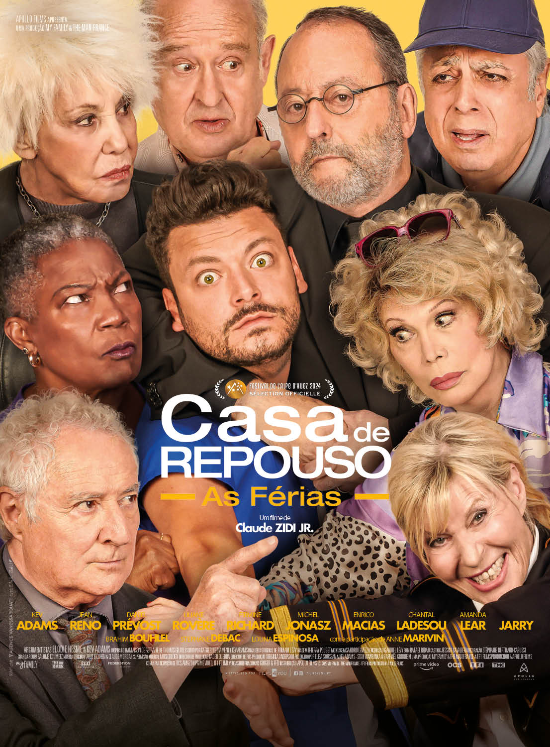 Para além de Adams, “Casa de Repouso - As Férias” conta novamente com as actuações de Daniel Prévost, Liliane Rovère, Firmine Richard, Marthe Villalonga, assim como de Michel Jonasz e de Jean Reno. PÚBLICO