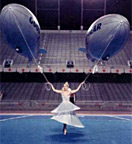 Uma diva platinada desenha padrões geométricos com dois dirigíveis da Goodyear sobre um estádio de futebol, enquanto um grupo de "showgirls" interpreta uma coreografia ao estilo de Busby Berkeley.