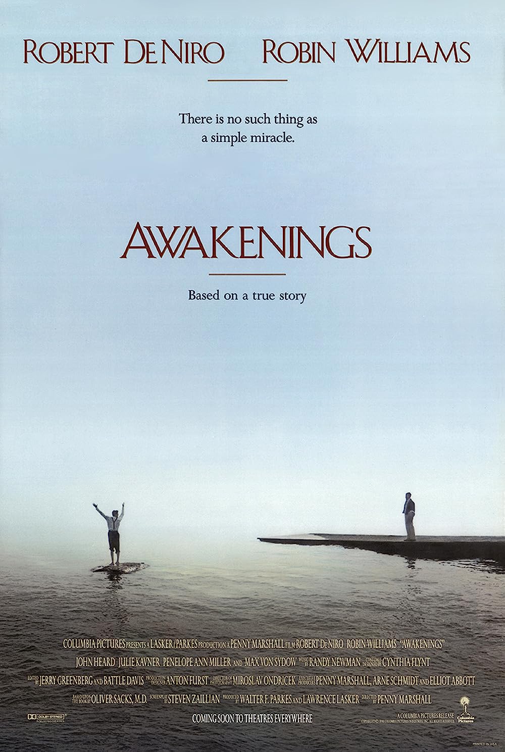 Um filme perturbador de Penny Marshall adaptado de um livro homónimo do neurologista Oliver Sacks, publicado em 1973, que esteve na origem de trabalhos de cariz documental e dramático, incluindo uma peça teatral de Harold Pinter. "Despertares" conta a história de um médico dedicado, responsável por um milagre involuntário, quando consegue trazer à normalidade uma série de doentes que se encontravam há anos em estado praticamente vegetativo. Apesar de ter tido óptimos resultados, o neurologista Malcolm Sayer (Robin Williams) descobre que a droga por ele utilizada produz efeitos secundários inesperados. Robert De Niro interpreta um dos personagens que desperta subitamente para a vida. Robin Williams é o médico deslumbrado com a essência do ser. "Despertares" esteve nomeado em três categorias para os Óscares de 1991: melhor actor (Robert De Niro), melhor filme (Walter F. Parkes e Lawrence Lasker) e melhor argumento adaptado (Steven Zaillian). PÚBLICO