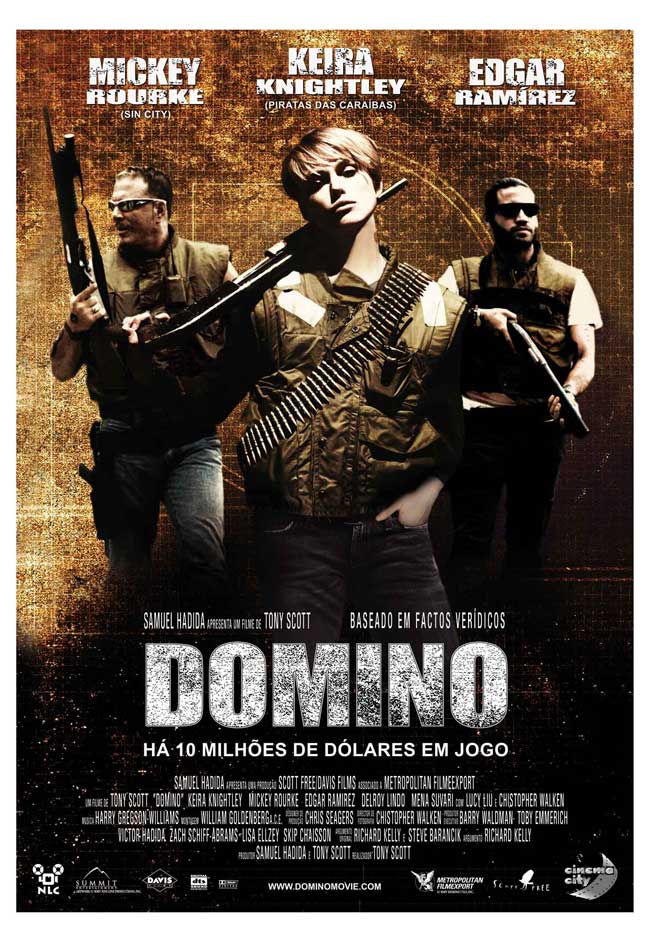 Domino Harvey (Keira Knightley), filha do actor Laurence Harvey, nasceu num meio rico e privilegiado, mas não era essa a vida que sonhava ter. Domino deixa a família e a carreira de modelo e torna-se uma caçadora de prémios, unindo-se a um grupo invulgar que captura criminosos que quebraram as regras da liberdade condicional. Juntos, tornam-se no mais infame e bem sucedido grupo de caçadores de prémios e acabam por se tornar nas estrelas de um "reality show". Mas o programa afecta seriamente as suas vidas. PÚBLICO