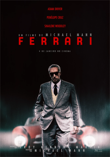 Este filme de Michael Mann (“O Ladrão Profissional”, “Heat - Cidade Sob Pressão”, “O Informador”) conta a história desse ano, tornando Ferrari, aqui interpretado por Adam Driver, em mais um dos seus protagonistas complexos, ambiciosos e ultracompetentes. O guião é assinado pelo escocês Troy Kennedy Martin, que morreu em 2009. No elenco, além de Driver, surgem nomes como Penélope Cruz, que faz de Laura Ferrari, sua esposa, Shailene Woodley, como Lina Lardi, a amante, Sarah Gadon ou Patrick Dempsey. A estreia ocorreu na 80.ª edição do Festival de Veneza. PÚBLICO