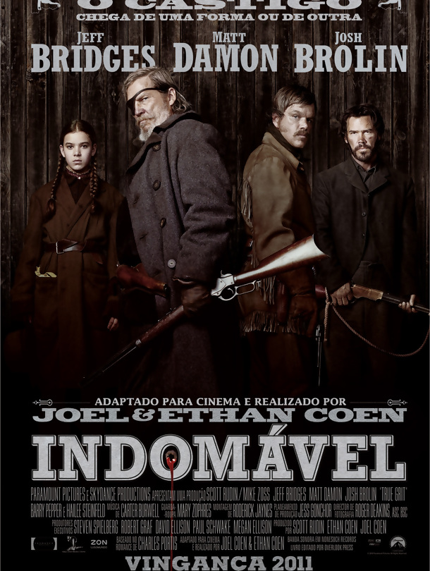 Para o caso de passar um destes dias na TV, ou em alguma reposição nas salas, deixo aqui uma opinião sobre este filme dos irmãos Cohen, na esperança de que isso contribua para incentivar alguém a desfrutar dele como eu, ou até, por exemplo, ir ao original que não vi (julgo tratar-se de um remake). Este filme toca aspetos particulares da minha sensibilidade, fazendo-me gostar dele por razões difíceis de exprimir através do pensamento. Talvez por isso seja uma obra de arte. A minha experiência ao vê-lo e revê-lo talvez seja demasiadamente pessoal e intransmissível, como o cartão de cidadão. Assim, dou a minha opinião sabendo que corro o risco de tentar explicar em demasia. Há por ali uma edificação em contrastes múltiplos que parece demonstrar que no cinema, tal como no espaço, já é possível encontrar mais do que três pares de dimensões opostas entre si, e já estou a descontar o preto e branco habitual entre o bem e o mal, que se espera num western à moda antiga. Temos uma criança frágil que é forte em contraste com um velho forte que é frágil. Aqueles que falam demais e quem é realmente duro. A natureza e o homem. A distância e o close-up. Os jogos de oposições ajudam muito à leitura do filme. Tudo o que é, parece sê-lo por oposição a alguma coisa, com contornos claros que deixam as coisas límpidas, à mercê de serem compreendidas na sua beleza, de um equilíbrio sistémico. Correndo o risco de estar a dizer demais, gostava ainda de deixar uma pista de leitura para um poema cinematográfico saído de uma arma, fazendo lembrar o registo documental das rosas no cano de espingardas no 25 de Abril, com a diferença de que neste caso houve efetivamente um disparo. Há ainda várias outras coisas boas no filme, que passado todo este tempo, provavelmente já terão sido bastante dissecadas. Ao contrário do que tantas vezes acontece, neste caso a tradução do título parece-me também bastante feliz. Mas prefiro não tomar o adjetivo “Indomável” como algo que se refira a qualquer um dos protagonistas. Para mim o que é indomável é o filme. Sem precisar de violência gratuita. Maior elogio não lhe poderia fazer.