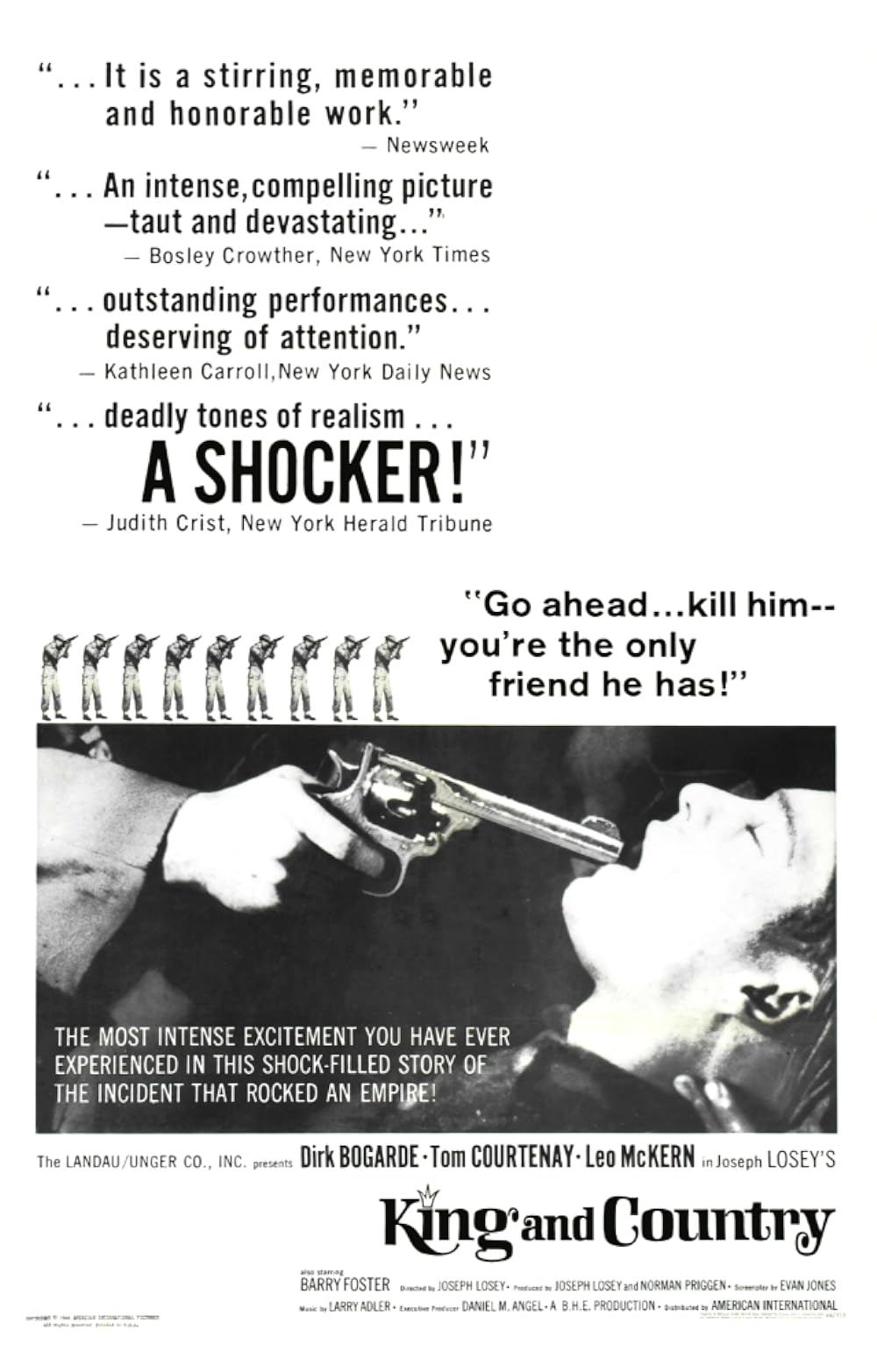 Baseado numa história verídica sucedida durante a I Grande Guerra, o filme põe Bogarde na pele do advogado de defesa de um soldado britânico acusado de deserção. Crítica das instituições militares, libelo anti-militarista e pró-pacifista, foi um filme polémico em vários quadrantes (em Portugal, por exemplo, nem sequer estreou) e é um dos mais poderosos filmes de Losey. Fernando Matos Silva viu o filme em Londres e não pôde deixar de encontrar nele um reflexo da guerra colonial que então se travava na dita “África portuguesa”. Texto: Cinemateca Portuguesa