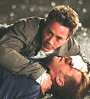 Shane Black é o argumentista de "Lethal Weapon" (1987-1998) e "The Last Boy Scout2 (1991), e isto não é para dissuadir ninguém de ver "Kiss Kiss, Bang Bang". Antes pelo contrário. Apesar de um passado discutível, a primeira realização de Black é uma bela surpresa, um filme de extremo bom gosto, com óptimos diálogos e que se delicia nos excessos de Hollywood. Usando como base os policiais de Raymond Chandler (cada um dos capítulos do filme leva o nome de uma história do autor), Black conta a história de Harry Lockhart (Robert Downey Jr.), um ladrão de pequena monta que, ao fugir da polícia, entra numa sala de audições, fazendo uma interpretação emocionante.<BR/><BR/>De um momento para o outro, está numa festa em Los Angeles, prestes a receber o papel que fará dele a próxima grande estrela de Hollywood. Para o seu trabalho de campo terá de acompanhar Gay Perry (Val Kilmer), um detective privado a sério, cuja alcunha "gay" não surgiu por acaso. Subitamente, eles encontram-se envolvidos numa série de misteriosos assassínios.<BR/><BR/>Em Los Angeles, Harry encontra a sua paixão de infância, Harmony Faith Lane (Michelle Monaghan), uma das muitas aspirantes que sonham com o êxito e que, ao fim de 15 anos de audições, tem apenas um anúncio de cervejas no curriculum. A paixão de Harmony pelas histórias de detectives de Jonny Gossamer, de que tanto gostava na sua infância, não desaparece quando também ela entra no meio de uma.<BR/><BR/>À semelhança de "Lethal Weapon" também este é um buddy-movie, com a vantagem de que existe muito mais química entre Downey Jr. e Kilmer do que alguma vez existiu entre Danny Glover e Mel Gibson. Cheio de coincidências e absurdos, com pessoas a morrerem abruptamente, os vivos mantendo-se vivos apenas por um fio, e as páginas virando-se indiferentes a tudo, este filme tem o mérito de nos envolver durante todo o passeio.<BR/><BR/>Harry Lockhart é, simultaneamente, protagonista e narrador desta história. E, se a sua personagem é cheia de defeitos, como narrador também deixa algo a desejar, interrompendo a história para voltar atrás e contar algo de que se esqueceu e dirigindo-se mais do que uma vez directamente ao espectador, nem sempre de forma mais elogiosa. Mas em nenhum momento estas interrupções são intrusivas, dada a inteligência com que são feitas.<BR/><BR/>Não fosse tudo o resto, este filme valeria a pena somente pela deliciosa e enérgica e interpretação de Robert Downey Jr., em grande forma e com uma naturalidade surpreendente, agarrado à única coisa que em Hollywood faz sentido: um bom argumento. Val Kilmer é totalmente convincente no seu charme gay e no seu sarcasmo, e é evidente o divertimento que foi fazer este filme. Michelle Monaghan não fica atrás destes dois pesos pesados, numa mistura de força, sentido de humor, desespero, perigo e sensualidade.<BR/><BR/>Black brinca com as regras dos filmes de acção, e é aqui que o passado está a seu favor, porque ele não só conhece todos os clichés, como os controla e manipula segundo os seus intentos, dando-nos uma visão cínica da cultura cinematográfica. Mais um olhar satírico ao seu próprio umbigo. Algo em que Hollywood se supera.<BR/><BR/>P.S. - Caso se façam a mesma pergunta que eu no final do filme, é Robert Downey Jr. que canta a canção "Broken", do seu álbum de 2004, "The Futurist".