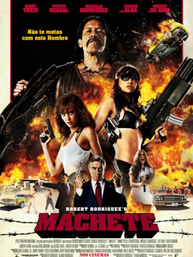 Os fãs da trilogia "El Mariachi" e outras pérolas de série Z de Rodriguez não ficarão desiludidos com este filme. A acção louca, com toneladas de sangue e mortes, o herói duro que engata todas as míúdas, os mauzões arrogantes, todos os ingredientes essenciais estão aqui presentes. Mas Machete dá muito mais que isto. Machete é um filme com conteúdo, que mostra a hipocrisia da política anti-imigração. É um filme que nos convida a ver o outro lado da história, o lado dos mexicanos que arriscam a vida à procura de uma vida melhor nos EUA. É um filme que mostra como a política anti-imigração serve frequentemente como apoio a redes de tráfico de droga ou de humanos e nada faz para travar o fluxo de imigrantes. Machete é também um filme com mulheres poderosas. Esqueçam as "bondgirls", miúdas sem nada na cabeça que estão lá só para serem engatadas pelo machão. As duas mulheres do filme são personagens centrais na história e, diga-se de passagem, são bem mais inteligentes que o Machete (o que não é difícil...). Só estes dois elementos fazem com que Machete seja um filme bem diferente dos filmes de série Z a que estamos habituados. Diferente para melhor, claro. Este é um daqueles filmes que ou se ama ou se odeia. Eu adorei e recomendo.