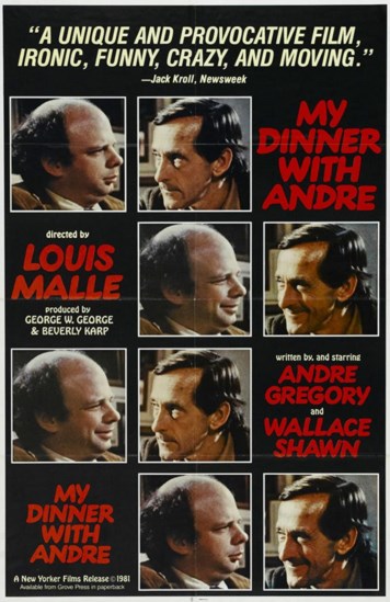 "My Dinner With Andre" marca uma rutura radical de Malle com os filmes que realizara até então nos Estados Unidos, todos com uma narrativa estruturada em três partes, que se estende no tempo. Trata-se de uma autêntica aposta cinematográfica: dois amigos que não se veem há algum tempo, encontram-se num restaurante e todo o filme consiste num longo diálogo entre os dois, à mesa. Rodado em 16 mm, como um documentário, o filme foi um desafio lançado a Malle pelo dramaturgo André Gregory e pelo ator Wallace Shawn, que observou que “Malle conseguiu hipnotizar os espectadores e levá-los com ele ao longo de todo o filme devido à maneira como usou o ritmo cinematográfico e também pelos seus sentimentos calorosos em relação às duas personagens”. À época, "My Dinner With Andre" tornou-se um autêntico filme de culto nos Estados Unidos. Texto: Cinemateca Portuguesa