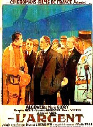 Um dos grandes monumentos do cinema francês do período, que reconcilia as ambições do cinema de arte com as características de uma super-produção. "L 'Argent" adapta o romance homónimo de Zola, transpondo-o para os anos 20. Trata-se da história de um banqueiro à beira da falência, que aposta tudo o que tem no inventor de um novo modelo de aviões, tenta seduzir a sua mulher e provoca deliberadamente o pânico na Bolsa de Valores, filmada numa sequência notável na verdadeira Bolsa de Paris. Com uma extraordinária fotografia e a câmara sempre em movimento, notáveis cenários e Brigitte Helm (de "Metropolis") no papel feminino, além de Antonin Artaud num pequeno papel, "L 'Argent" é um dos pontos culminantes da arte de um importante realizador.Texto: Cinemateca Portuguesa