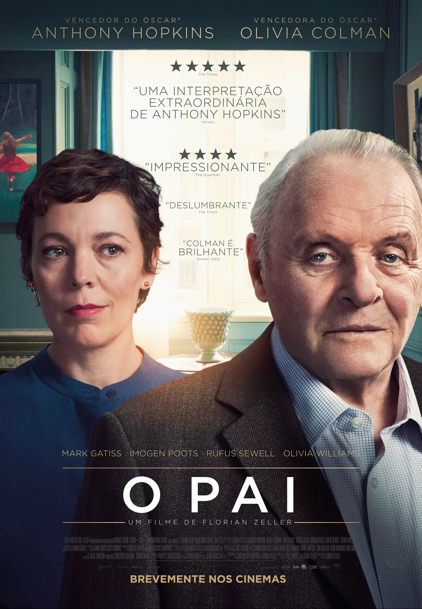 O Último Poema de UM PAI (a propósito de "The Father") <br /> <br />* <br /> <br />Há um homem perdido dentro da sua mente. <br />Como se fosse um puzzle, com entradas e saídas temporais, portas que se fecham, rostos que não se repetem, nomes que não fazem sentido. <br />Num apartamento de classe média alta, jaz um ancião, de nome Anthony (curiosamente, o mesmo nome do enorme ACTOR que lhe dá corpo e alma, e que até tem a mesma exacta idade – nascidos ambos a 31 de Dezembro de 1937), sem conhecer as pessoas que consigo se cruzam, numa enredada teia de loucura e desatino própria de quem está doente e perdendo as coordenadas geográficas e mentais de toda uma vida. <br />Engenheiro de profissão, diz-se agora bailarino, a arte que teria preferido à dos cimentos e pedras cortantes. Porque, afinal, é no fim da vida, quando se perde a razão, que os nossos verdadeiros anseios e amores (e ódios) acabam por se revelar. A verdade não gosta da realidade. Muito mais da ilusão e da perda de tino. <br />Vive, afinal, com a filha Anne (que vemos na pele de Olívia Colman, uma tardia actriz que todos os anos nos maravilha, aqui a viver o mesmo nome da sua rainha do Oscar, película de Yorgos Lanthimos), num apartamento que pensa ser seu e que não quer, a todo o custo, abandonar. <br />Homens e mulheres estranhos sucedem-se no hall de entrada, as suas cuidadoras não resistem ao seu mau feitio e tudo cai por cima de uma filha que sofre com aquele desatino de um Pai que, a tudo e a todos, vai gritando ao mundo que sempre preferiu uma outra filha, entretanto falecida, àquela que dele cuida com enlevo e generosidade. <br />Custa ver o definhar de alguém, o cair das folhas de um Ser Humano, a baba e ranho acesos por uma degenerescência mental, o canto de cisne de um homem que ouve Callas todos os dias (e o excerto de Casta Diva é magnífico) e que já nem sequer distingue a voz da filha da da enfermeira do lar onde afinal o acabam por colocar. <br />E é magnífica a realização de Florian Zeller, que também assina o argumento, ao lado do Oscarizado Christopher Hampton, nascido no Faial, nos nossos Açores (o de Ligações Perigosas, Carrington e Expiação, e que se apresta para assinar o argumento fílmico do Sunset Boulevard que vai dar o 1º OSCAR à «minha» Glenn Close). <br />Tudo começou por uma peça. E a atmosfera do filme é teatral a todo o gás e a toda a trama. Vemos a casa, o espaço, o tempo, as pessoas sempre pelos olhos de Anthony num exercício empático que quase nos leva à loucura visual e auditiva. <br />Zeller descreve o seu filme “como uma espécie de suspense, convidando o público a construir a narrativa, como eu fiz no teatro. Eu queria que o público se sentisse próximo aos personagens.” Na adaptação de sua própria peça, ele aponta que “o cinema e o teatro nos lembram que somos parte de algo maior que nós mesmos. Apesar das qualidades labirínticas do original, há uma sensação de alegria na peça que eu queria manter no filme.” <br />Hopkins mereceu o OSCAR por este retrato, aquele que já lhe devia ter sido também entregue por DESPOJOS DO DIA, em 1993/1994 – perfeito, irrepreensível, de uma tocante vulnerabilidade, própria de quem não faz já de si próprio, saindo mesmo da sua pele (o que Frances MacDormand nunca faz em NOMADLAND e que, por isso, para mim, torna injusto este Oscar de 2021, muito mais justo nas mãos de Carey Mulligan). <br />“Faço isto há muito, sei alguns truques...”, ri-se o actor. Que adoptou o absurdo como lema. “O nascermos é a grande blague”. <br />* <br />É uma peça, um filme sobre a demência. <br />E, por ele, sou chamado para outra informação que recebi recentemente. <br />Um adolescente começa a ler um poema de Rudyard Kipling, rompendo o silêncio numa sala cheia de idosos: "se puder manter a calma/quando todos à tua volta já a perderam", quando um deles, doente de Alzheimer completa com um murmúrio: "você será um homem, meu filho!". <br />Para combater a perda de memória que afecta 800 mil pessoas no Reino Unido, instituições especializadas e hospitais começaram a recorrer à poesia, a mais absurda de todas as artes e a mais sublime de todas as verdades alternativas da vida. <br />A melodia e o ritmo de versos conhecidos conseguem bater na porta da memória, servem de detonador que activa a palavra e as lembranças. <br />Quando os pacientes "escutam uma palavra que conseguem lembrar de um poema, eles ganham o dia", contou Elaine Gibbs, directora do lar para idosos Hylands, que abriga 19 idosos em Stratford-upon-Avon, terra natal de William Shakespeare, região central da Inglaterra. <br />Com os cabelos grisalhos presos e vestido florido, Miriam Cowley ouve com atenção uma jovem que lê o poema "À Margarida", de William Wordsworth, um clássico nas escolas britânicas. <br />"Sabia o poema, mas tinha esquecido. Aprendi quando era menina", lembrou esta antiga professora, que sofre com a perda de memória recente. "Terei belos sonhos, sonhos tranquilizadores, de margaridas e árvores", comemorou. <br />E nós com ela. <br />Os poemas salvam-nos sempre. <br />Afinal, o Anthony não chegou a perder as suas folhas, a sua árvore permanece de pé mesmo que só veja ninfas em vez de frangos, ventos em vez de carros, luas em vez de luzes. <br />Foi uma noite forte. <br />Mas voltei com o Anthony comigo para casa. <br />E pensei, serenamente, no meu Joaquim e no meu Luís Manuel. <br />A alquimia do Cinema faz disto – o distante torna-se perto, a dor alheia é tida como nossa. <br />Até à redenção e ao genérico final… <br />E à próxima cantata de Einaudi (que também assina a partitura musical, a par de Nomadland)...