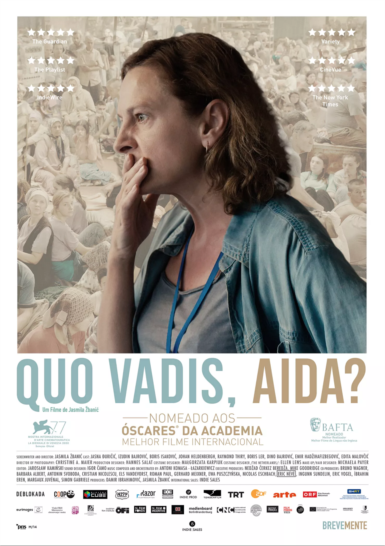 A acção decorre em 1995 e tem como cenário o hediondo massacre de Srebrenica, onde pereceram assassinados 8373 bósnios, quase todos homens e muçulmanos, inserido na estratégia de limpeza étnica do exército sérvio, comandados pelo general Ratko Mladic. A história acompanha Aida, uma tradutora local ao serviço da ONU, no momento em que começam a chegar notícias de que os comandos sérvios se aproximam da cidade e a população, em fuga, procura refúgio junto da ONU, num aquartelamento próximo. E pedem mais: que a organização não só os proteja como também ataque os sérvios. A ONU promete que sim, mas a verdade é que, inoperante tal qual no passado, nada faz. Um mar de gente continua a afluir para ali, mas os Capacetes Azuis, sem experiência, constituídos por militares imberbes, também têm medo dos sérvios. Aida antecipa o desfecho e tenta salvar o marido e o filho, mas entre a burocracia e a indolência da ONU, acaba por os ver seguir com os milhares de outros, conduzidos pelos sérvios, para o destino final… <br /> <br />A dor de Aida perpassa todo o filme. Começa no desespero de os tentar salvar, passa pela sua perda e vai até anos depois, quando lhe pedem para examinar os restos de dezenas de cadáveres acabados de retirar duma vala comum… Claro que continua, mas há um sentimento de fim de ciclo, de que há que recomeçar a partir dali, como se confirma pela longa e perturbante, mas também injusta, saudável, positiva, inglória, cena final… O desempenho de Jasna Ðuricic é notável, duma força impressionante, mostrando todos os matizes do drama: o seu, o da sua família, da sua cidade, do seu país. O título do filme tem ressonâncias religiosas (apócrifas), citando a pergunta de Pedro a Jesus, a que Este respondeu, “Vou para Roma para ser crucificado”. A Aida do filme, caminha igualmente para a sua paixão, a sua crucificação: a dor imensa de perder a família <br /> <br />O filme é assinado pela realizadora bósnia Jasmila Zbanic, nascida precisamente em 1974, no ano em que nós, portugueses, cortámos com o passado e apostámos na construção dum futuro melhor, onde a Liberdade fosse a bandeira de orientação. Também ela narra uma história que tem um passado horrível, que há que recordar, mas que não pode ser impedimento para o futuro. Num estilo sereno, sem grandes dramatismos (nem sequer vemos o massacre correspondente das personagens retratadas, apenas o ouvimos…), mostra-nos o que aconteceu aos seus compatriotas e como se comportou quem tinha responsabilidades. Ou seja, num tempo em que “se não está filmado ou fotografado, não existe”, Zbanic trata os espectadores com respeito, confiando na sua inteligência para “verem” o que não é mostrado. E, como sabemos, o efeito da sugestão é mais poderoso do que o da exibição… <br /> <br />Um outro ponto de que é impossível fugir após a visualização de “Quo Vadis, Aida?” é a enorme semelhança entre os comportamentos que aqui vemos por parte dos carrascos sérvios e das vítimas bósnias, e os ecos doutros genocídios, nomeadamente o mais visualizado, o dos judeus às mãos dos nazis, mas também os que aconteceram no Ruanda e no Sudão, retratados em filmes como “Hotel Rwanda” e “The Good Lie”. O padrão comportamental é o mesmo, os actores parecem clones e as consequências idênticas – brutais e terríveis. E, no entanto, fica-se com a impressão que a comunidade internacional olha para cada uma destas situações como se duma novidade se tratasse… O filme expõe a incapacidade, a incompetência, a impreparação da ONU naquele cenário, que, claro, apenas faz eco da voz de quem está nas confortáveis salas de reuniões localizadas na 1st Av., em Nova Iorque... Porque aqueles milhares de bósnios morreram pelas balas dos sérvios, é certo, mas também pela incúria da ONU. Vale a pena olhar para o passado? Vale, enquanto lição para o futuro, jamais para ficar preso a ele. <br /> <br />Um belo e duro filme, que merecia uma atenção especial. E não falo só pela força da história, mas enquanto objecto cinematográfico, onde os vários elementos, desde a realização à interpretação, passando pelo argumento e pela reconstituição, são capazes de gerar emoção genuína e duradoura. Ou seja, cinema a sério!