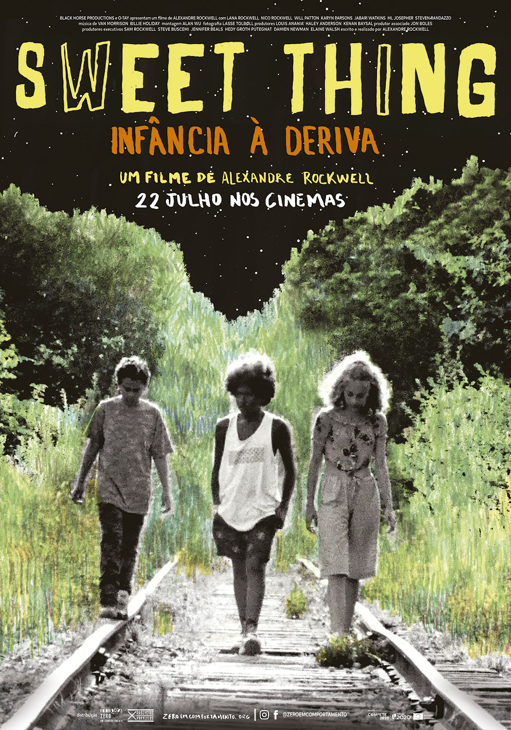 A adolescente Billie e Nico, o seu irmão mais novo, têm problemas em casa do pai, que é alcoólico, e da mãe, que é negligente. Isso leva-os a fugirem e a tentarem encontrar um sítio onde possam estar melhor. É esta a premissa do regresso à realização de Alexandre Rockwell, nome importante do cinema independente norte-americano das décadas de 1980, 1990 e 2000 que já não filmava desde "Little Feet", de 2013. Tal como nesse filme anterior, "Sweet Thing" envolve a família de Rockwell, já que Lana e Nico Rockwell, os protagonistas, são seus filhos, sendo que a mãe, Karyn Parsons, também faz parte do elenco como mãe deles. PÚBLICO