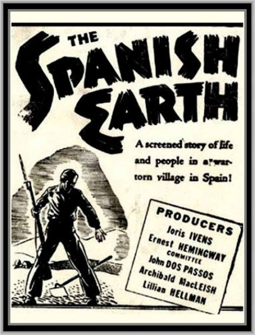 A agonia da Guerra Civil Espanhola de 1936-39 é a realidade retratada por SPANISH EARTH, cujo comentário foi escrito e dito por Ernest Hemingway, e que permanece como um dos mais intensos testemunhos do conflito que dividiu Espanha. Texto: Cinemateca Portuguesa