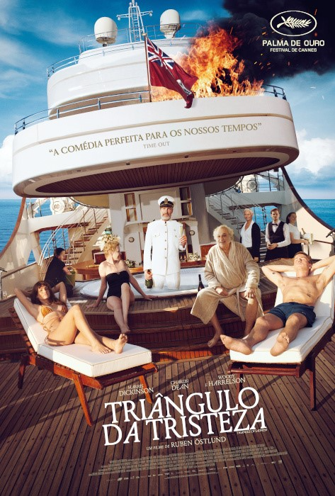 O realizador sueco Ruben Östlund após arrecadar, em 2017, a palma de ouro no Festival de Cannes com o filme "Quadrado", este ano conseguiu repetir tal façanha graças ao recém estreado "Triângulo da Tristeza". Uma hilariante sátira político-social ácida e niilista (polvilhada - talvez em excesso - de humor escatológico) aos papéis de género, à falta de escrúpulos (e de noção da realidade) daqueles que detêm o poder financeiro (e que irão experimentar do seu próprio veneno através de uma inversão dos estatutos sociais consequência de um evento catastrófico) e ao sórdido artificialismo/futilidade dos influencers do Instagram. No centro do enredo (que reflecte um surrealista e estereotipado microcosmos da sociedade actual), cuja narrativa se encontra subdividida numa espécie de 3 capítulos ("colados" de modo algo ineficiente e irregulares no conteúdo, já que gradativamente vão cedendo lugar à piada "mais fácil" - mas que acaba por "renascer das brasas" com um inesperado final em aberto), está um jovem casal de modelos em crise relacional (no qual o elemento feminino, mais bem sucedido profissionalmente, exibe uma ambição desmedida de ascender socialmente), encarnado na perfeição por Harris Dickinson e Charlbi Dean Kriek (repentinamente falecida em Agosto).