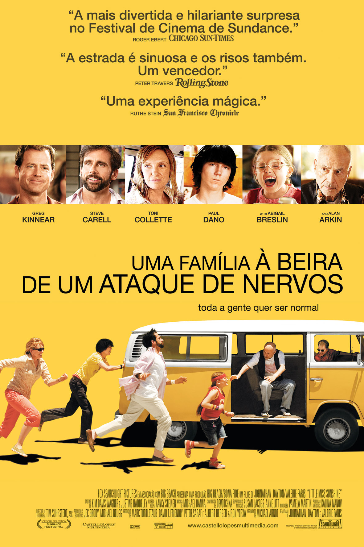 "Little Miss Sunshine", etiquetado como recente sensação do cinema independente americano, confirma cabalmente o várias vezes já referido e laborioso processo de expansão do universo "indie" a públicos mais generalistas. É com empolgamento ou receio de traição, consoante as perspectivas, que se vai assistindo a um movimento de "canibalismo" de temas, expressões, olhares doentios, outrora reservado a públicos construídos pela dignidade de estar à margem. Ou por outra, uma super-estrutura que vai lentamente digerindo e assimilando um nicho de irreverência, canalizando-o para um grande público, cada vez mais farto de estrelas e chavões. Momento sintomático dessa apropriação comprovou-se este ano, com a vitória na cerimónia dos Óscares, contra todas as expectativas, de "Crash", de Paul Haggis, na categoria de melhor filme. Mas pensar que essa fusão parte exclusivamente da iniciativa do mais forte é ser ingénuo e só ver parte da questão. Ao invés, a própria estrutura "indie" vai sendo dotada de outras preocupações que condicionam muitas das escolhas que enformam filmes como os recentes "Thumbsucker" de Mike Mills ou mesmo "The Squid and the Whale" de Noah Baumbach, este com um salto de Sundance para os Óscares.<BR/><BR/>Talvez por isso, "Little Miss Sunshine" nos surja rotulado como uma comédia "indie" em tons negros, estruturada em "road movie", sobre o tema "indie" mais "batido" - a família norte-americana disfuncional - e acabe por se revelar uma obra solar, expondo um didactismo optimista, traduzida numa apoteose final, para bem de todas as famílias. Ou por outras palavras, um "feel good movie", transmitindo ao espectador um pouco da irreverência "indie" num "pack" mais maneirinho, "light" diríamos.<BR/><BR/>Assim, fala-se de uma família americana de opostos (disfuncional ou tipo, escolha você mesmo), cada um incapaz de lidar com o hipotético fracasso: o pai (Greg Kinnear), expoente de determinação, vivendo segundo (e do) esquema dos "nove passos" para o sucesso; o tio (Steve Carell), professor homossexual que se tenta suicidar devido a um desgosto de amor; a mãe (Toni Collette) a tentar remendar os problemas familiares; o avô (Alan Arkin) desbocado e viciado em heroína; o filho (Paul Dano), adolescente admirador de Nietzsche que fez um voto de silêncio até ser admitido na escola de aviação; e finalmente a filha, Olive (Abigail Breslin), que aos sete anos só pensa em ganhar o concurso infantil Mrs. Little Miss Sunshine.<br/><br/>Se toda a família oscila entre a determinação cega e o nihilismo, cada um com os seus estratagemas de ilusão, Olive acaba por ser a interrogação para o futuro, em quem mais fortemente se poderá observar os resultados de uma terapia de grupo que toda a família enceta quando viaja numa velha carrinha Volkswagen, do Novo México à Califórnia, para levar a pequena ao referido concurso. Pelo caminho, alguns hilariantes problemas de locomoção e lições de vida do género: é ténue a linha entre o fracasso e o sucesso; a beleza é subjectiva, o importante é participar e não desistir, etc., etc..<BR/><BR/>Se é certo que as "armas" estão apontadas a uma mentalidade competitiva bacoca norte-americana, a facilidade das conclusões extraídas ("Life is one fuckin' beauty contest after another") arranca sorrisos, pelo menos ao olhar europeu. Sorrimos porque de lá se considera estar a fazer um filme ousado, criando antes, neste tipo de mutação "indie/family movie", um grupo de clichés de crítica ao estilo de vida americano efectuado pelos próprios. Longe estamos assim dos "processos mais destrutivos e impenetráveis" de instituições sagradas, das primeiras obras de um Terry Zwigoff ou de Todd Solondz.<BR/><BR/>Resta uma referência à inteligente utilização da música nos pontos altos da viagem em família, fazendo jus à carreira na realização de videoclips musicais da dupla de realizadores Jonathan Dayton e Valerie Faris. Outro ponto forte da obra, que conquistou o prémio do público no festival de San Sebastián, é certamente todo o trabalho de "casting". Destaque para o minimalismo assombroso de Steve Farrel, próximo de Bill Murray, e dos jorros de expressividade que brotam do trabalho prodigioso de composição da jovem Abigail Breslin. Nota: 7/10.