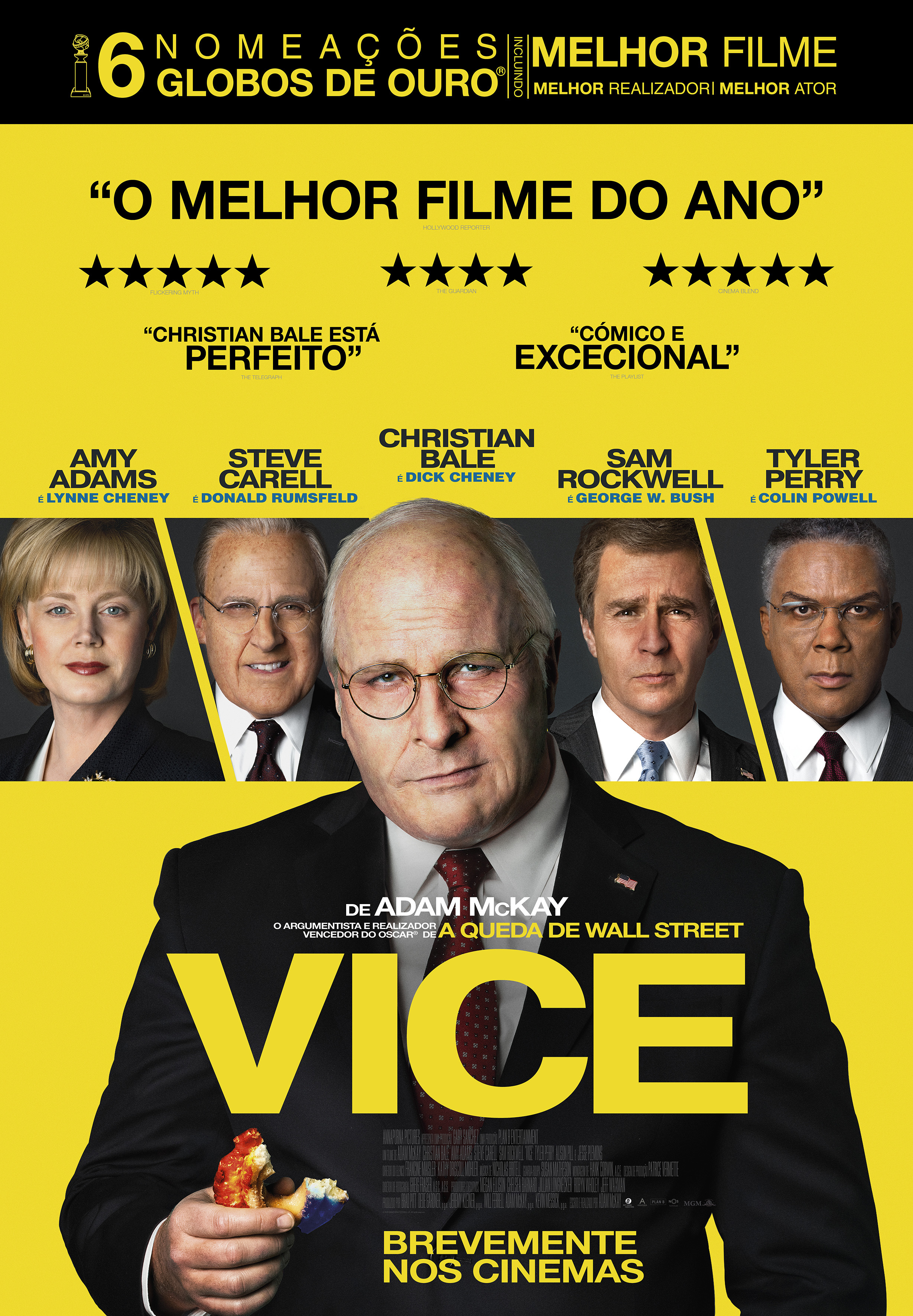“No country for weak men” ou “este país não é para fracos”, poderia ser o título alternativo de “Vice”, o biopic de Dick Cheney, o vice-presidente norte-americano durante os dois mandatos de George W. Bush mas que, na verdade, foi o presidente de facto, estendendo “urbi et orbi” a sua influência e o seu poder. <br />Quem estiver minimamente atento ao mundo da política, sabe bem que é um mundo quase sem regras e ainda menos escrúpulos. O vício impera e daí que o título original deste filme de Adam McKay tenha um saboroso “double entendre”, de tanto significar o cargo político ocupado como a característica principal da personagem na sua visão para o Mundo e respectiva execução. O filme cobre a maior parte da vida de Dick Cheney, o que se calhar não terá sido a melhor opção. Porque ele teve uma vida que dava para vários filmes e enfiá-la em pouco mais de duas horas acaba por saber a pouco, até porque a parte mais interessante é, sem dúvida, a sua passagem pela Casa Branca, que praticamente começou, como é sabido, com os ataques de 11 de Setembro às Torres Gémeas e os consequentes conflitos bélicos no Médio Oriente daí resultantes. Esta parte é significativa na narrativa de “Vice”, mas merecia mais, até porque foi um tempo de decisões difíceis e complexas. A parte familiar tem obviamente a sua importância, como contraponto à vida pública e para avaliarmos até onde ia a ambição pessoal do retratado, mas a verdade é que o fascínio pela detenção do poder e respectivo exercício seriam, sempre, as partes mais suculentas da vida de Dick Cheney. <br />Foram tempos complicados na América e no Mundo. Porventura, no meio da tempestade é necessário haver uma personagem com um perfil como o de Dick Cheney, alguém com uma mentalidade pragmática e com objectivos claros e definidos – independentemente de se saber se tinha, ou não, interesses pessoais e financeiros directos ou indirectos nos mesmos… E mais interessante se torna quando nos é revelado que foi um telefonema a mudar o rumo da História, quando Cheney coloca condições para ser vice-presidente, supondo que não seriam aceites, mas são. A própria narrativa brinca com esse momento, ficcionando o que teria sido se tal não tivesse sido aceite e como que terminando o filme quando ainda nem se ia a meio da projecção… <br />Adam McKay, realizador e argumentista, assina aqui o seu segundo filme de peso, depois do brilhante “A Queda de Wall Street”, onde recebeu o Óscar para melhor argumento adaptado. Poderia ter feito outras opções, como atrás se referiu, mas consegue apresentar um "biopic" coerente e vivo. Mas isso deve-se, especialmente, à interpretação de Christan Bale. O facto de nos fazer esquecer o actor já é um sinal de excelência. Mas o actor galês, por vezes apenas pela voz e pela postura, consegue transmitir o lado negro de Cheney, a sua faceta conspirativa, a sombra que tudo cobria. Soberbo. Seria ainda injusto esquecer o papel Lynn Cheney, a fiel mulher e conselheira do vice-presidente, interpretada por uma actriz cujos belos e expressivos olhos há muito merecem o reconhecimento devidos, Amy Adams.